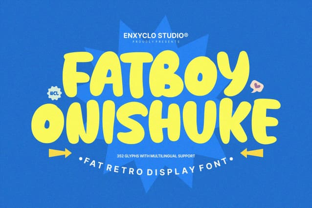 NCL Fatboy Onishuke Font is a bold playful fat retro display font. Masterfully designed to become a true favorite, this font has the potential to bring each of your creative ideas to the highest level! It was purposely crafted to be used in large point sizes, although it doesn’t lose its magic in small point sizes. It is perfect for headline, billboard, magazines, website, titles, poster, branding, and logos. No matter the topic, this font will be an incredible asset to your fonts’ library, as it has the potential to elevate any creation. With this beautiful font, absolutely you can make your project stand out from the rest.