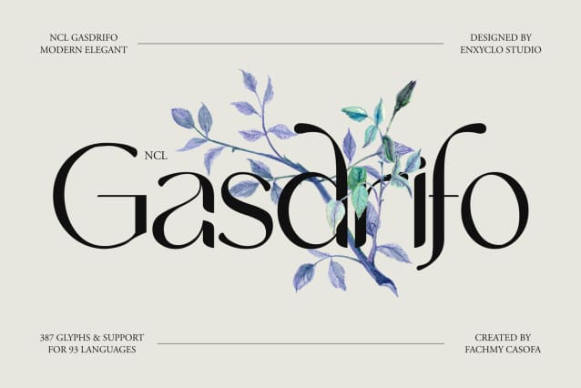 NCL GASDRIFO TYPEFACE is a modern elegant font. Masterfully designed to become a true favorite, this font has the potential to bring each of your creative ideas to the highest level! NCL Gasdrifo was purposely crafted to be used in large point sizes, although it doesn’t lose its magic in small point sizes. NCL Gasdrifo is perfect for wedding, headline, billboard, magazines, website, titles, poster, branding, and logos. No matter the topic, this font will be an incredible asset to your fonts’ library, as it has the potential to elevate any creation. With this beautiful font, absolutely you can make your project stand out from the rest.