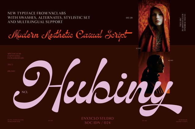 NCL Hubiny is a modern casual script display font. Masterfully designed to become a true favorite, this font has the potential to bring each of your creative ideas to the highest level! It was purposely crafted to be used in large point sizes, although it doesn’t lose its magic in small point sizes. It is perfect for headline, digital ads, magazines, website, poster, branding, and logos. No matter the topic, this font will be an incredible asset to your fonts’ library, as it has the potential to elevate any creation. With this beautiful font, absolutely you can make your project stand out from the rest.