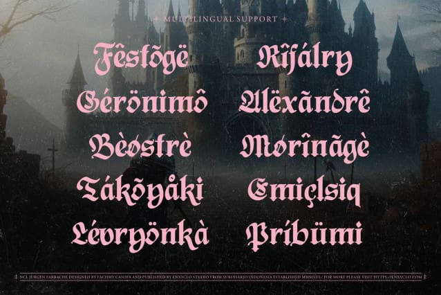 NCL Jurgen Farbache Font is a medieval rounded blackletter font. The letters are inspired from the middle ages with a blackletter style but have rounded corners which are unique and modern. Very suitable for creative projects that have a medieval theme or contemporary designs but have a classic touch. Its modern aesthetics bring a whole new dimension to your designs, making them stand out. Whether you’re working on a website, poster, logo, or any other project, this font adds that extra touch of innovation and sophistication.