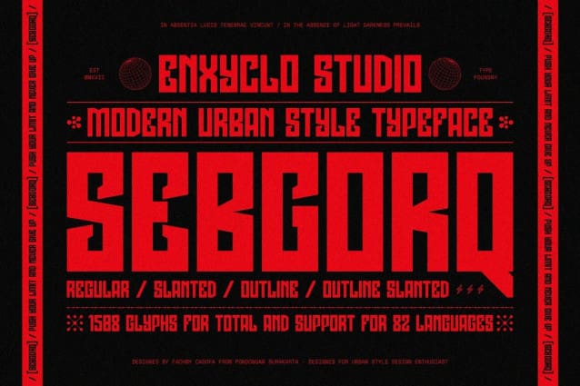 NCL Sebgorq Font is demo font free for personal use only. If you wish to use it for commercial use, you need to purchase a license. Link to purchase full version and commercial license: https://creativemarket.com/enxyclo/91541903-NCL-Sebgorq-Urban-Font?u=fontlot123