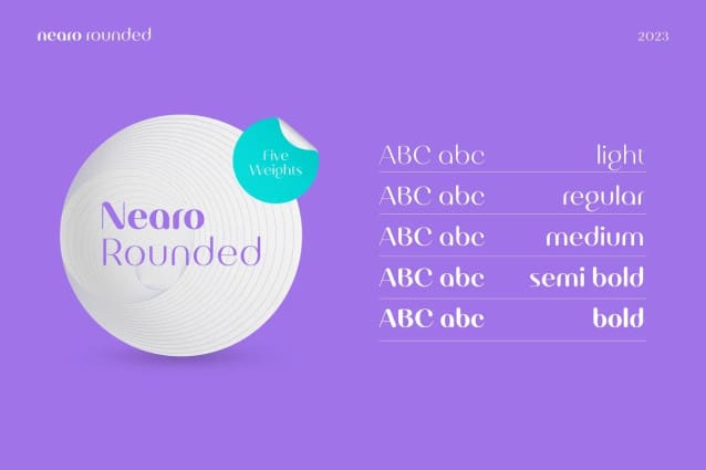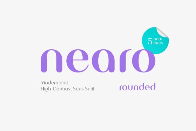 Nearo Rounded Font, features five high-contrast font styles and thick and thin round shapes making this font unique. NearoRounded can be applied to various formal projects, including logos, magazines, books, packaging, fashion, cosmetics, invitations, novels, labels, greeting cards, and other advertising.