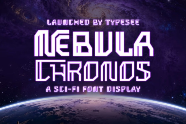 Nebula Chronos Font is a futuristic sci-fi display font inspired by cosmic technology, digital interfaces, and interstellar adventures perfect for bold titles, gaming graphics, space themed posters, and high-tech branding.