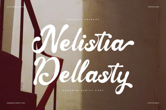 Nelistia Dellasty Font | Hand Draw Script, from Denustudios, suitable for any projects such as: logos, branding projects, homeware designs, product packaging, mugs, quotes, posters, shopping bags, t-shirts, book covers, name card, invitation cards, greeting cards, label, photography, watermark, special events, and all your other lovely projects that need a Hand Draw Script taste.
