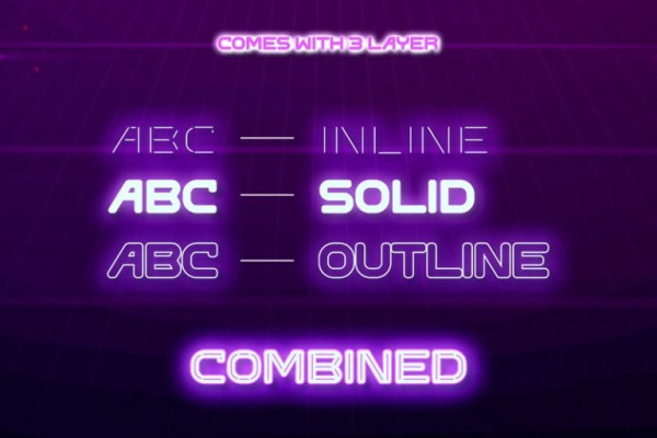 The fusion of outline, solid, and inline elements creates a dynamic and eye-catching display that is perfect for headlines, logos, and impactful titles. Neon Hypes is ideal for designs that seek to make a bold statement with a touch of neon-inspired flair. Whether you’re creating posters, branding materials, digital artwork, or anything in between, this font will add a mesmerizing and unforgettable element. It particularly shines in applications related to nightlife, entertainment, gaming, and futuristic themes, where it adds a futuristic edge. Find out more ways to use this font by taking a look at the font preview.