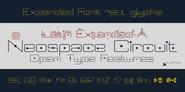 Neospace Circuit Font is an avant-garde typeface designed for lovers of technology and science fiction. With its elegant extended proportion and geometric minimalism, NeospaceCircuit redefines typographic aesthetics with a perfect fusion between modern and futuristic.