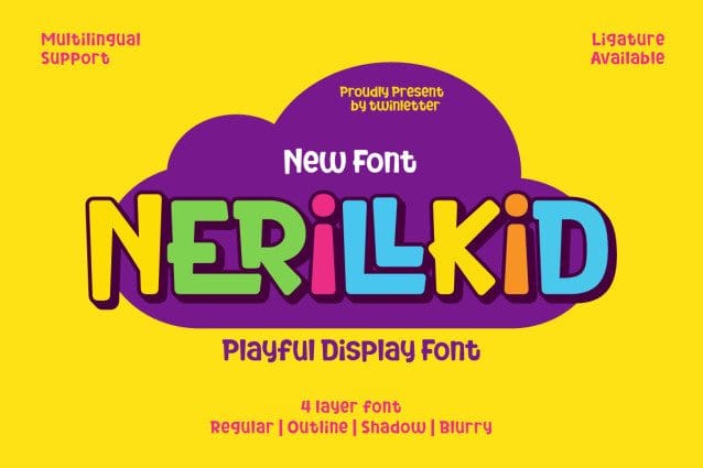 Nerillkid Playful Font is a journey through a world of imagination and fun. With a wide selection of styles, this font is ready to be part of a colorful and joyful design.