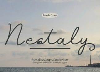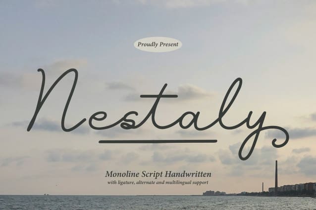 Nestaly Monoline Script Handwritten, from Gracetypestudio, suitable for any projects such as: logos, branding projects, homeware designs, product packaging, mugs, quotes, posters, shopping bags, t-shirts, book covers, name card, invitation cards, greeting cards, label, photography, watermark, special events, and all your other lovely projects that need a Monoline Script Handwritten taste.