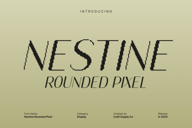 Nestine Rounded Pixel Font This is a modern sans serif display font designed with clean, precise lines that convey professionalism and timeless elegance. Its balanced letterforms create a polished and refined appearance, making it perfect for contemporary designs that require clarity, style, and sophistication.