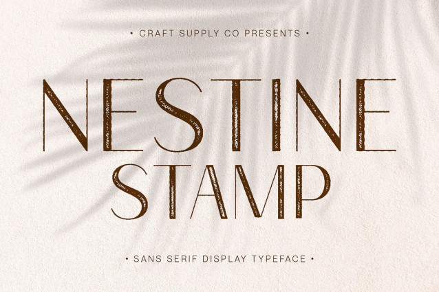 Nestine Stamp Font is a modern sans-serif font that embraces clean lines and minimalist shapes, infused with a distinctive stamp texture. Its refined structure meets raw character, creating a typeface that feels both elegant and expressive.