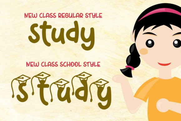 New Class Handwriting Font is a fun and friendly handwritten font. It features school-themed characters and it feels sweet and playful. Take your school projects to the next level with this unique typeface!
