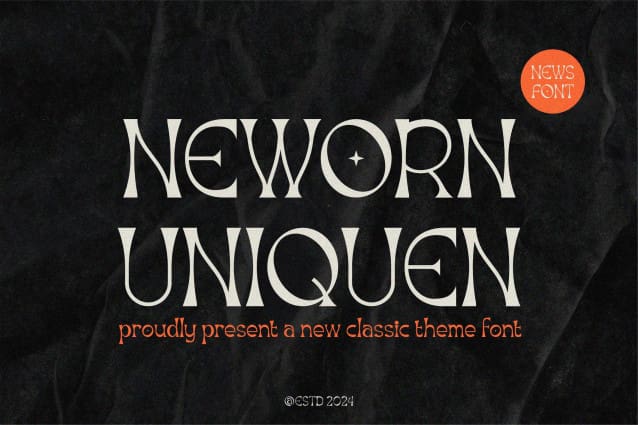 Neworn Uniquen a New Classic Font. Very suitable to be combined with invitation card designs, company logos, film titles, film names, business cards, book titles, brand names and various other designs. Its stylish alternation and binding make this font the perfect partner for any project.