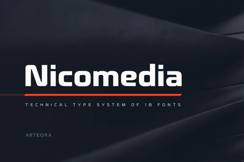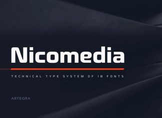 Nicomedia Font is a modern sans serif type family with a contemporary, technical look that reflects the high-tech industrial age that we’re living in. From thin to black, it contains 18 fonts in 9 weights with their true italic counterparts. With 529 glyphs, it offers support for all the languages with Latin script. When it comes to OpenType features it has stylistic alternates (for a, g, l, 0, 1), tabular lining, ligatures, superscript, subscript, denominators, numerators and fractions. It’s perfect to create engaging brands, ads, websites, apps, animations and user interfaces.