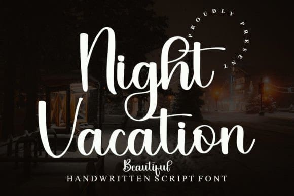 Night Vacation Font is an enchanting handwritten font. This versatile script font has a wide spectrum of applications ranging from greeting cards to headlines and is guaranteed to add a romantic feel to your next project.