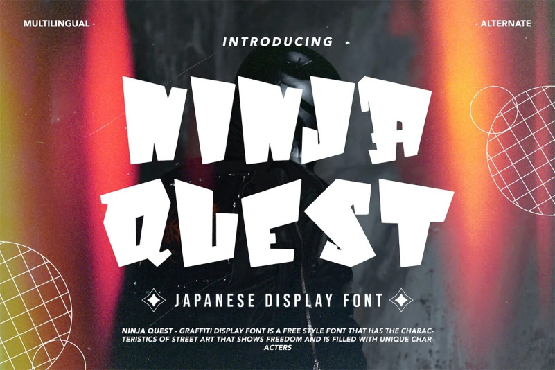 Link to purchase full version and commercial license: https://creativemarket.com/Arendstudio/7026785-Ninja-Quest-Japanese-Display-Font?u=fontlot123
