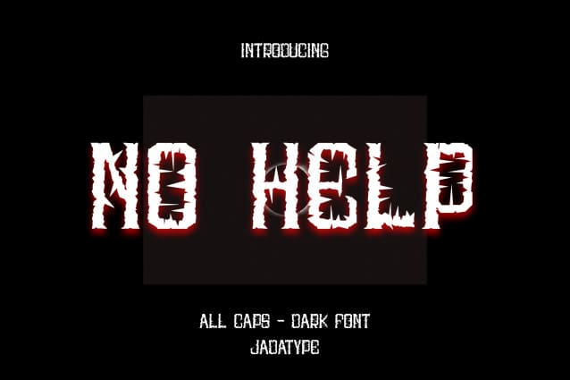 No Help Font, is an all caps display font that comes with a scary-dark-black-halloween style. suitable for tshirt, branding, social media, and so on. contains standard English letters, numbers, punctuation, and several accents that support multilingualism.