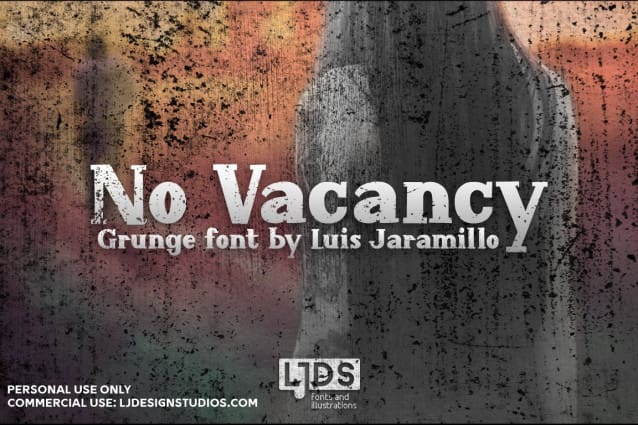 This font is Demo Font free for PERSONAL USE only. Link to purchase full version and commercial license: https://ljdesignstudios.com/no-vacancy-fonts/
