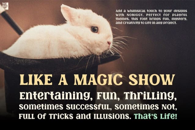 The stylistic details of Nobiggy Display make it unique. Each letter is carefully crafted with smooth curves and balanced proportions, ensuring visual harmony in any composition. Additionally, the font incorporates subtle decorative elements that enhance its retro appeal, making it versatile for a wide range of creative applications. Its timeless design allows it to blend seamlessly into both bold, colorful layouts and minimalist, monochromatic themes.