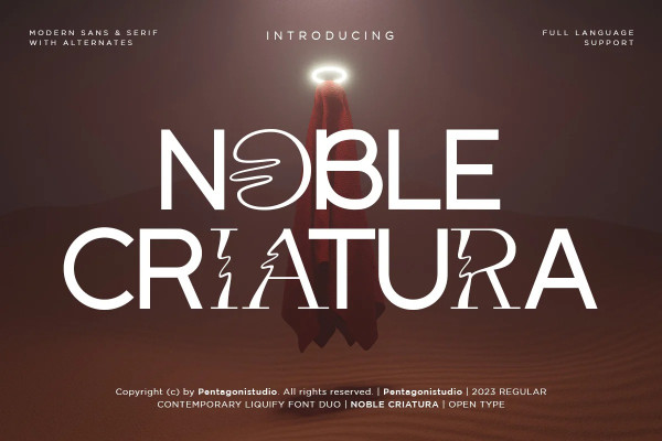 Noble Criatura Font Is A Display Font Combinated with Sans/Serif Typefaces. Its optimum legibility, clean, and geometric look is perfect branding, brochures, greeting cards, quotes, posters, stationary, design titles, blog headers, and much more.