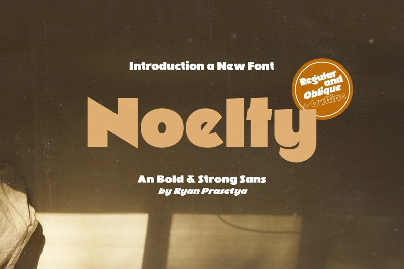 NOELTY Font is a new bold sans with strong character The font contain some alternate characters that make different to your design and consist to bring you lot of language support, you can try your language on type box.