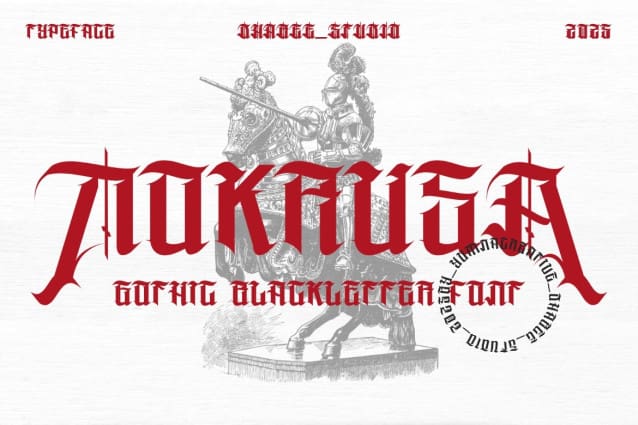 Nokrusa Blackletter Font. This Font is a delicate, elegant and flowing handwritten font. It has beautiful and well as a unique blend of ligatures a letter, so that the authors compose it with a and little swirly embedding, so that a modern font is formed and ready to make a statement by adding elegant and unique flair to your next design project. Add it to your most creative ideas and notice how it makes them come alive!