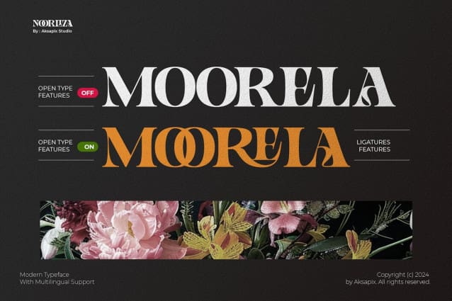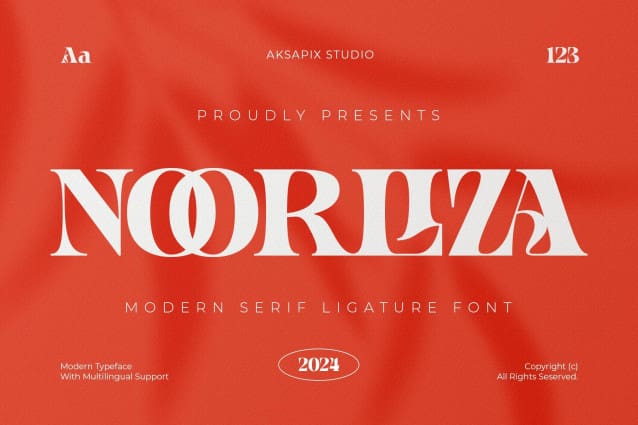 Noorliza Font – Modern Serif Ligature Font, a sophisticated font that combines classic elegance with contemporary style. Noorliza is designed to add a touch of sophistication to your projects with its well-crafted ligatures and versatile character set. Whether you are working on branding, editorial design, or any other creative endeavor, this font offers a perfect blend of beauty and functionality.