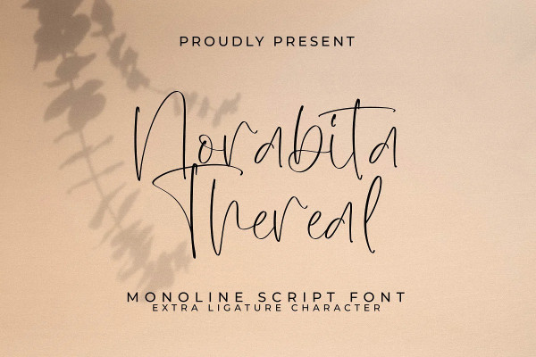 Norabita Thereal Font – Monoline Script Font, from Integritype Studio, is a premium Monoline Script Font, perfect for any project like: logos, branding projects, homewares designs, product packaging, mugs, quotes, posters, shopping bags, t-shirts, covers books, business cards, invitation cards, greeting cards, labels, photography, watermarks, special events and all your other luxury projects that require a premium taste.