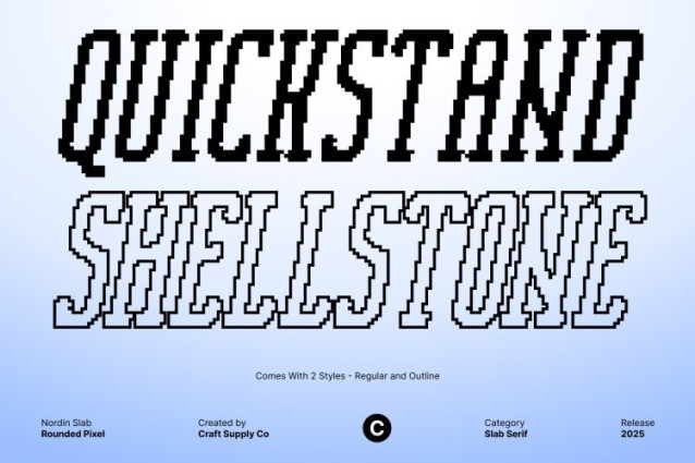 Nordin Slab Rounded Pixel Font This is a commanding slab serif font designed to deliver strength, clarity, and character in every letter. With bold strokes and sturdy forms, this typeface captures attention instantly, making it ideal for designs that demand presence and authority.