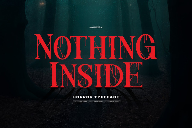 Nothing Inside Font | Horror Typeface, from Denustudios, suitable for any projects such as: logos, branding projects, homeware designs, product packaging, mugs, quotes, posters, shopping bags, t-shirts, book covers, name card, invitation cards, greeting cards, label, photography, watermark, special events, and all your other lovely projects that need a Horror Typeface taste.