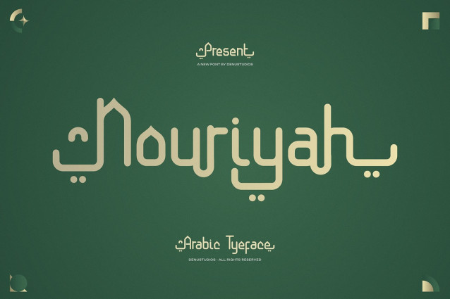 Nouriyah Font | Arabic Typeface, from Denustudios, suitable for any projects such as: logos, branding projects, homeware designs, product packaging, mugs, quotes, posters, shopping bags, t-shirts, book covers, name card, invitation cards, greeting cards, label, photography, watermark, special events, and all your other lovely projects that need a Arabic taste.