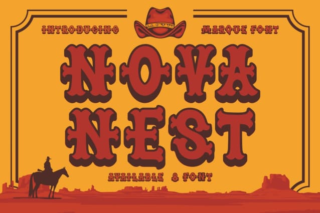 Nova Nest is not just a font; it’s a narrative tool that transports your audience to the days of saloons and showdowns. It’s as versatile as it is striking, suitable for logos, branding, crafting, invitations, packaging, posters, titles, business cards, greeting cards, stickers, children’s books, magazines, and more. If your project calls for a font with a western vibe and an adventurous spirit, saddle up with Nova Nest – it’s sure to lasso in your audience with its authentic charm.