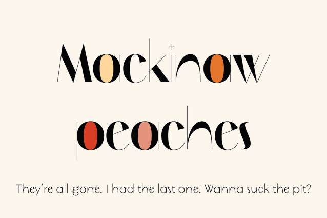 NT Mackinaw Peaches Font is a display font designed to be used at very big sizes. It would be a perfect choice to design posters, affiches, logos, t-shirt and magazine prints, eye-pleasing typographic designs and more.