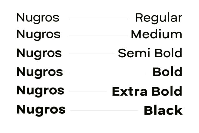 Nugros Sans Serif gives a luxurious and confident impression, making it suitable for use as the main element in branding designs. It is also suitable for use in various types of designs because of its flexibility.