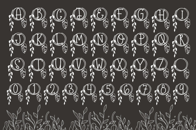 Oak Feather Monogram Font is a refined serif monogram font featuring graceful uppercase letters adorned with a blend of oak leaves and feather details. Inspired by woodland textures and boho elegance, this font brings organic sophistication to personalized initials, rustic branding, and wedding designs.