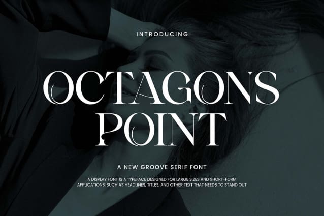 Octagos Point Groove Serif Font. The modern display font feels beautiful classy, elegant, and stylish. This font is ideally suited for a wide variety of projects, such as signature, stationery, logo, wedding, typography quotes, magazine or book covers, website headers, branding, and more. Also, fashion-related branding or editorial design displays both masculine and feminine qualities.