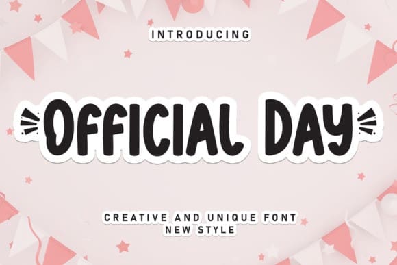 This font is made for personal use. Get the full version of the fonts if you want to use it for commercial purposes by purchasing the licenses here: https://www.creativefabrica.com/product/official-day/