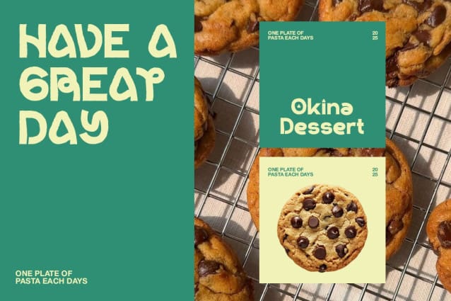 Okina Regular includes a complete character set plus 22+ ligatures & alternates and advanced OpenType features — allowing expressive typographic combinations and custom headline treatments that make your food branding stand out