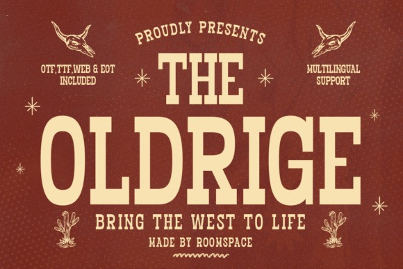 Oldrige Font a commanding, heavy slab serif display typeface deeply rooted in classic Western and vintage American signage aesthetics.
