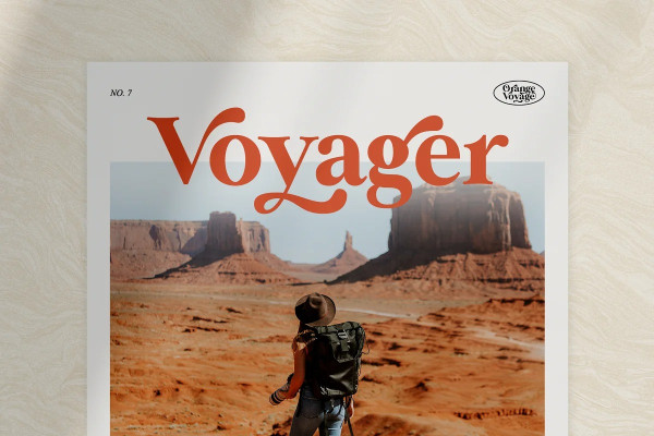 Orange Voyage Font is a modern serif with vintage charm, fashionable appearance with a touch of retro