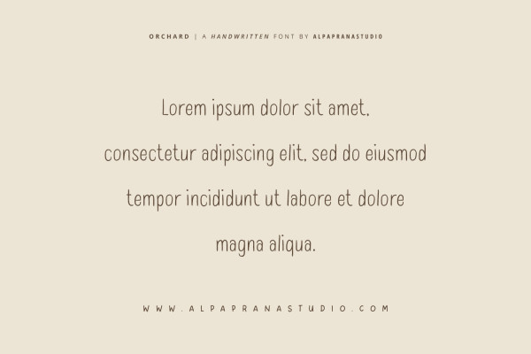 Orchard Font is a handwritten display font with natural and modern feels. Orchard Font will be perfectly used for Branding, Logo Design, Lettering, Logotype, Clothing, Poster, magazine, packaging, posters, shopping bags, t-shirts, book covers, photography, special events and other design project.
