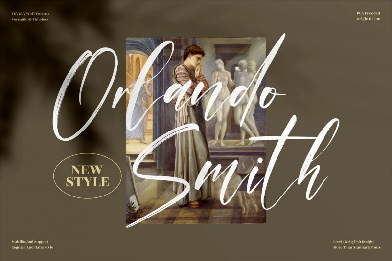 Orlando Smith – Premium Brush Font, from Perspectype Studio, is a handwritten font, suitable for any projects such as: logos, branding projects, homeware designs, product packaging, mugs, quotes, posters, shopping bags, t-shirts, book covers, name card, invitation cards, greeting cards, label, photography, watermark, special events, and all your other luxury projects that need a handwritten taste.