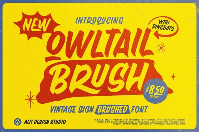 Owltail Brush Font, a font that brings the charm of traditional hand-painted sign art to your fingertips. Perfect for designs that require an authentic, personal touch, Owltail Brush features fluid, brush-stroke lettering reminiscent of classic shop signs, street markets, and nostalgic advertisements. Whether you’re working on retro-inspired branding, packaging, logos, posters, or creative social media content, this font will add a warm, handmade feel to your work.