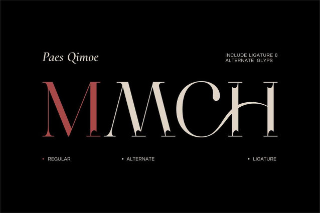 Perfect for editorials, luxury branding, fashion magazines, book covers, wedding invitations, packaging, and and any project that needs elegant drama, Paes Qimoe brings a polished aesthetic to both print and digital designs.