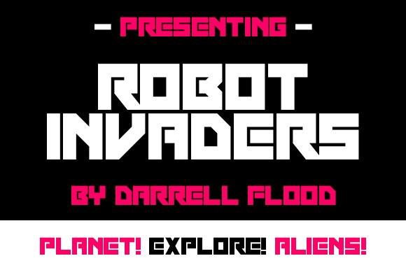 Robot Invaders Display Font by Darrell Flood 8,672 downloads Found in: Display Fonts, Techno / Futuristic Fonts Robot Invaders Display Font
