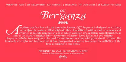 Berganza Font by Cuchi, qué tipo 29,966 downloads Found in: Display Fonts, Retro / Vintage Fonts, Serif Fonts Berganza Font