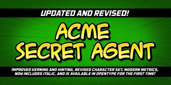 ACME Secret Agent Display Font by Blambot 7,709 downloads Found in: Display Fonts, Playful / Fun Fonts ACME Secret Agent Display Font