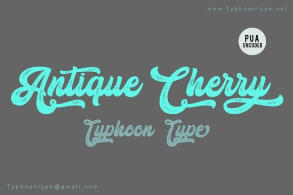 Antique Cherry Script Font by Typhoon Type - Suthi Srisopha 9,093 downloads Found in: Retro / Vintage Fonts, Script Fonts Antique Cherry Script Font