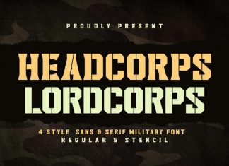 Headcorps & Lordcorps Display Military Font by Almarkhatype 16,728 downloads Found in: Display Fonts, Stencil Fonts Headcorps & Lordcorp...