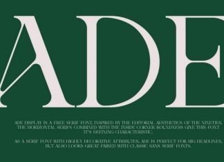 ADE DISPLAY TYPEFACE by Thunder Studio 14,542 downloads Found in: Serif Fonts, Style / Aesthetic Fonts ADE DISPLAY TYPEFACE