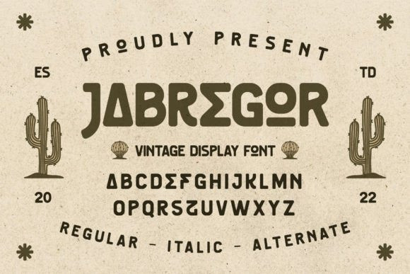 JABREGOR Display Font by Storytype Studio 9,198 downloads Found in: Display Fonts, Retro / Vintage Fonts JABREGOR Display Font